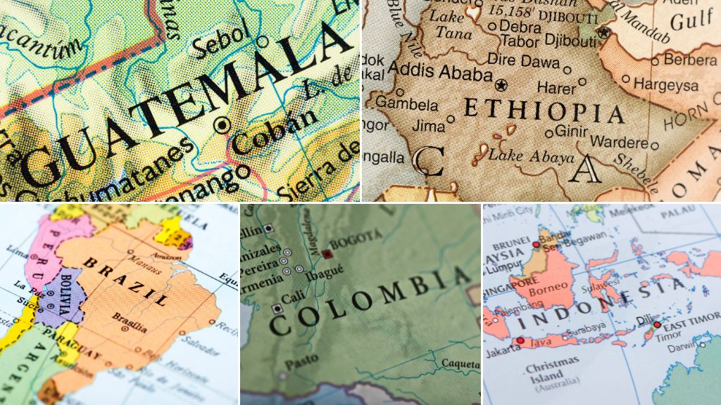 Hiện nay, trên thế giới có nhiều vùng trồng cà phê nổi tiếng với sản lượng lớn và chất lượng tốt. Ngoài Việt Nam, có 5 vùng trồng cà phê nổi tiếng khác trên thế giới: